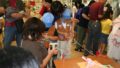 クリーンパークを見学した後、牛乳パックでハガキを作りました。
