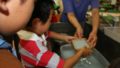 クリーンパークを見学した後、牛乳パックでハガキを作りました。