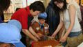 クリーンパークを見学した後、牛乳パックでハガキを作りました。