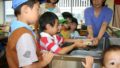 クリーンパークを見学した後、牛乳パックでハガキを作りました。