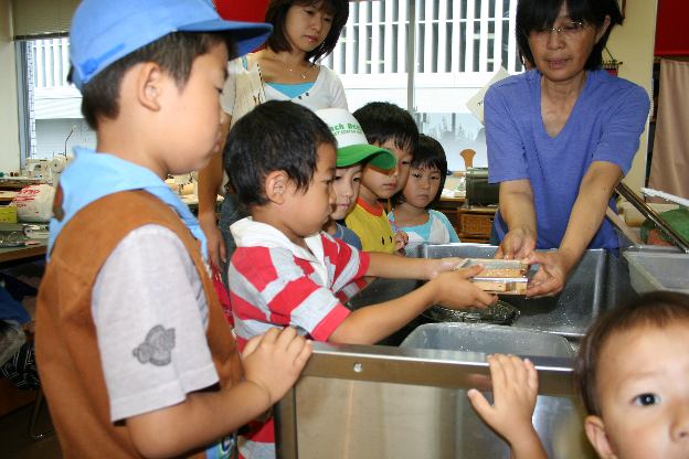 クリーンパークを見学した後、牛乳パックでハガキを作りました。
