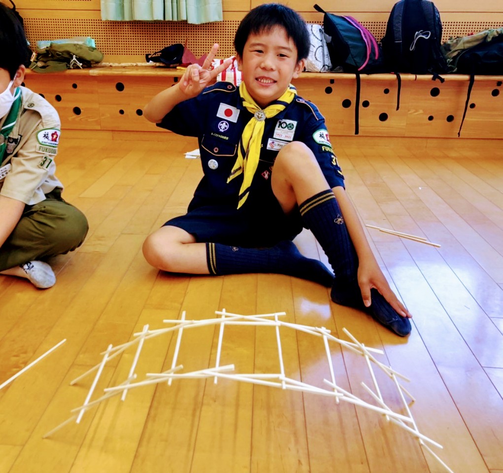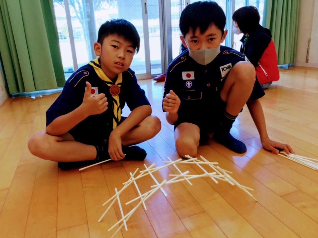【カブ隊】STEM博士になろう 2020/11/1小学校高学年の活動2020.11.16今回の組集会は実験。ダヴィンチの橋とブーメラン作りにチャレンジし、その仕組みについて学びました。ダヴィンチが発案した釘を使わずに摩擦力だけで組み立てる橋を割り箸で作りました。ダヴィンチの橋みんな苦戦しながらも橋を完成させようと頑張ってます。やったー。完成‼️ブーメラン作りにも挑戦。ブーメラン飛ばし。誰のが一番上手く飛ぶかな?