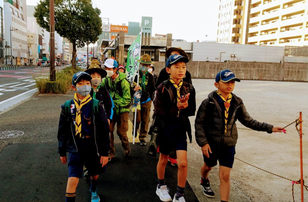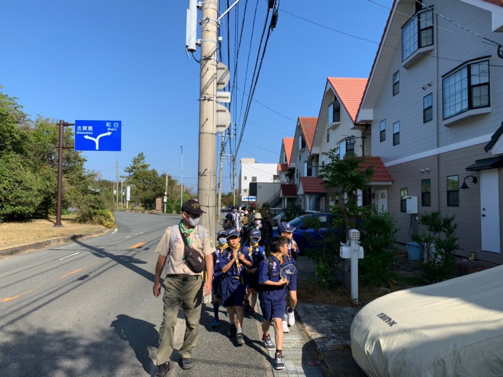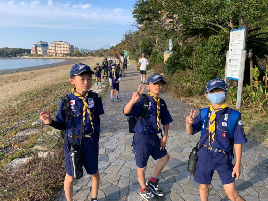【カブ隊】30キロハイク 2020/11/15小学校高学年の活動2020.11.17くま30キロ、しか20キロ、うさぎ10キロの”カブ隊30キロハイク”今回はボーイ隊5名も一緒です。まずは、千早~香住ヶ丘~アイランドシティ~雁ノ巣へと向かいます。歩いて見る景色はまた違って見えます。雁ノ巣到着。しかスカウト合流。20キロに向けて出発です。海ノ中道~西戸崎を折り返し、雁ノ巣に戻ってきます。海ノ中道の長い一本道。途中お茶休憩。少し疲れが出てきたかな?もうすぐ西戸崎の折り返し地点折り返し地点にある木に登るスカウト。まだまだ元気です。再び雁ノ巣へ戻ります。雁ノ巣ではうさぎスカウトと合流。奈多~和白干潟~下原へ抜けていきます。細い道を抜けて、香椎花園前近くの公園で休憩です。香椎浜まで戻ってきました。ゴールの千早まであともう少し。みんな無事にゴール🏁全員完歩おめでとう❗️